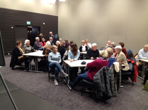 Det var høy stemning med Hortens blomster Finn på besøk. Det var over 50 personer som møtte opp og hørte på.Vi loddet ut blomster som Finn hadde med og et bilde som Bjørn Bryde donerte.
