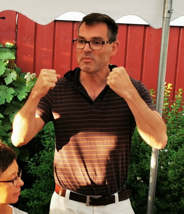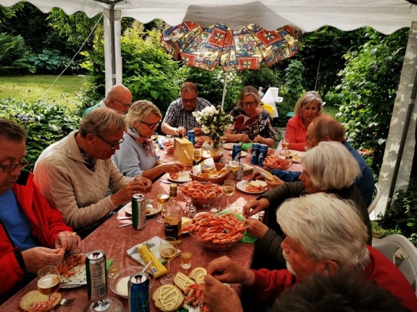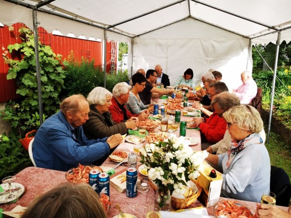 Stemningen var sterkt upåklagelig på årets Rekefest! Og dessverre den siste hos Astri og Bjørn Bryde. Men stooor takk skal dere ha! Hyggelig bord var dekket under teltet i hagen, og det varslede regnet uteble. Et bilde ble loddet ut -av en "anonym" giver. Toralt ble det solgt ispinnelodd for 1640,-, og vinneren ble:............