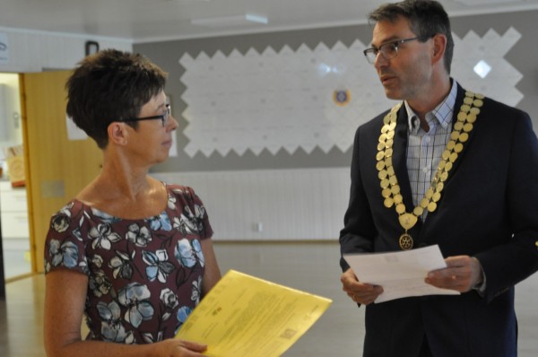 Årets presidentskifte ble flyttet i siste liten fra terassen til Jan Nærsnes til lokalet til Horten turnforening grunnet dårlig vær. Lokalene var nyoppusset og gav en fin ramme for kveldens høydepunkt som var opptak av Katrien Aas-Haug som nytt medlem av Horten Rotary og overlevering av presidentvervet til Karin Haugen Fjellhegn.