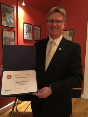 Horten Rotary vil takke Wilfred for det arbeidet og de verdiene han står for. Vi er stolte over å kunne overrekke han Rotarys høyeste utmerkelse, Paul Harris Fellow medaljen, for samfunnsgagnlige innsats i Horten.